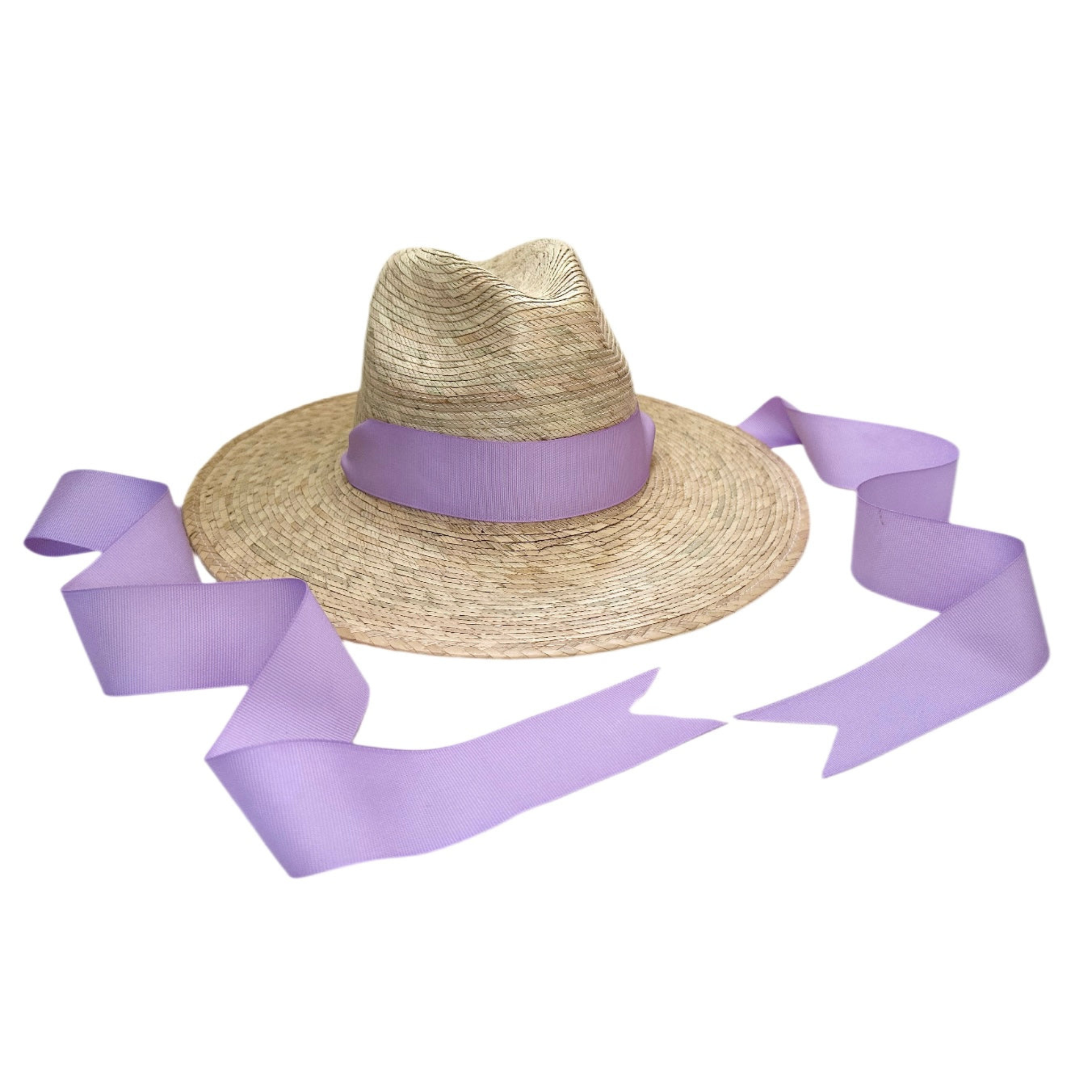 Zinnia Sun Hat for Little Girls (Age 4-10) - Long Lilac Grosgrain Ribbon